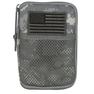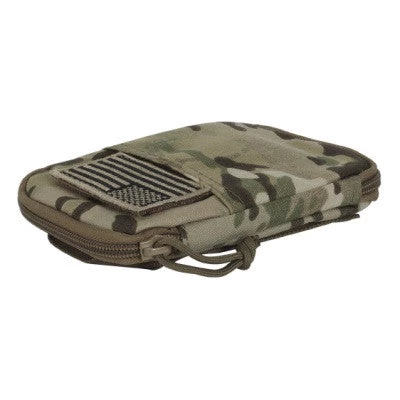 The Voodoo Tactical Universal Compatible BDU Wallet holds I.D., pens, pencils, flashlight, electronics, medical supplies, passport, etc. Universal straps for easy attachment to belt or pack. 9 separate pockets/slots, external mesh pocket and two inside lanyards with clips. Full zip with pull and a removable hook-n-loop subdued U.S.A. flag patch.