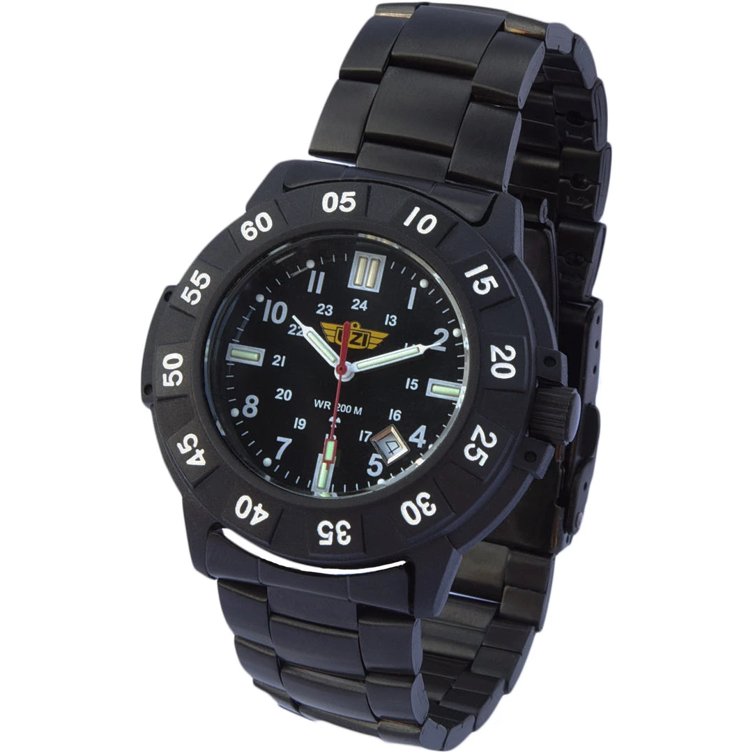 The UZI-001-M Protector Swiss Tritium Watch is a timepiece designed to keep up with your active lifestyle, while maintaining its dependability and striking look and providing a dial that can be viewed in low light conditions and total darkness.