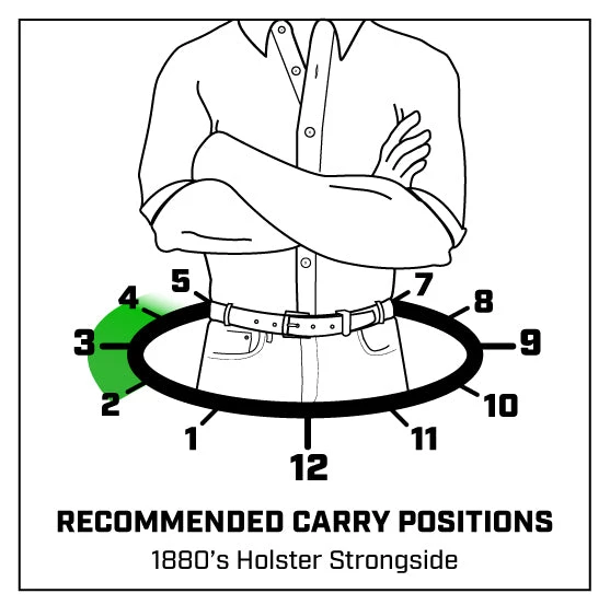 The Model 1880s™ is the holster for the single action shooter on the budget of the working cowboy. It is reminiscent of the rigs worn in American Westerns in the 1950’s and 60’s. The holster is high-ride and is now available for both a strong side draw and cross draw. It is constructed of premium full-grain natural tan steerhide.